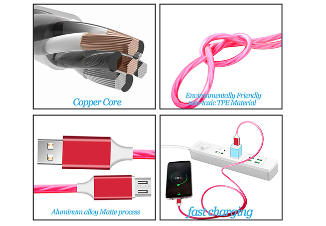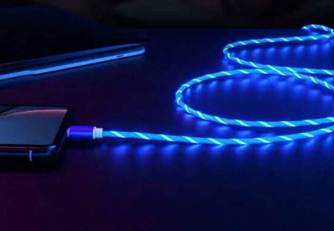 - Light up phone charger cable is automatically light up, it does not affect the charging speed, but brings a sense of technology. Led flowing light up charger cable luminous design is also a unique sight at festivals or parties.