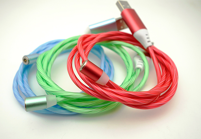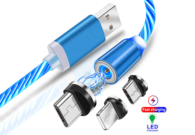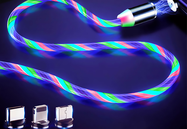 FLOWING MAGNETIC CHARGING CABLE The flowing light makes the electric current visible, which makes it a perfect decoration in the room, and easy to find or charge your phone in darkness. Innovative flowing light effect brings charging way more fun.